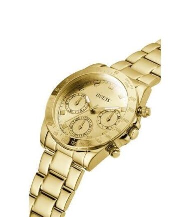 Brand, Seller, or Collection Name GUESS Model number W0448L2 Part Number W0448L2 Model Year 2018 Item Shape Round Display Type Analog Clasp Deployment Clasp Case material Gold plated stainless steel Case diameter 36 millimeters Case Thickness 9 millimeters Band Material Stainless Steel Gold Plated Band size Women’s Standard Band width